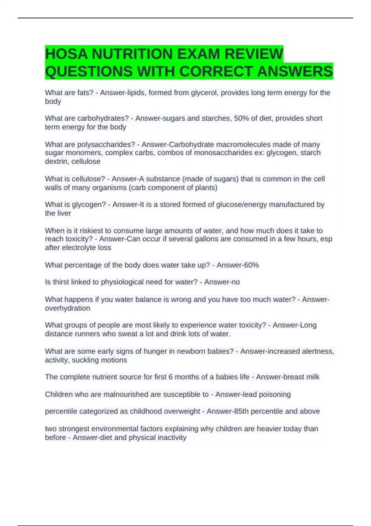 HOSA NUTRITION EXAM REVIEW