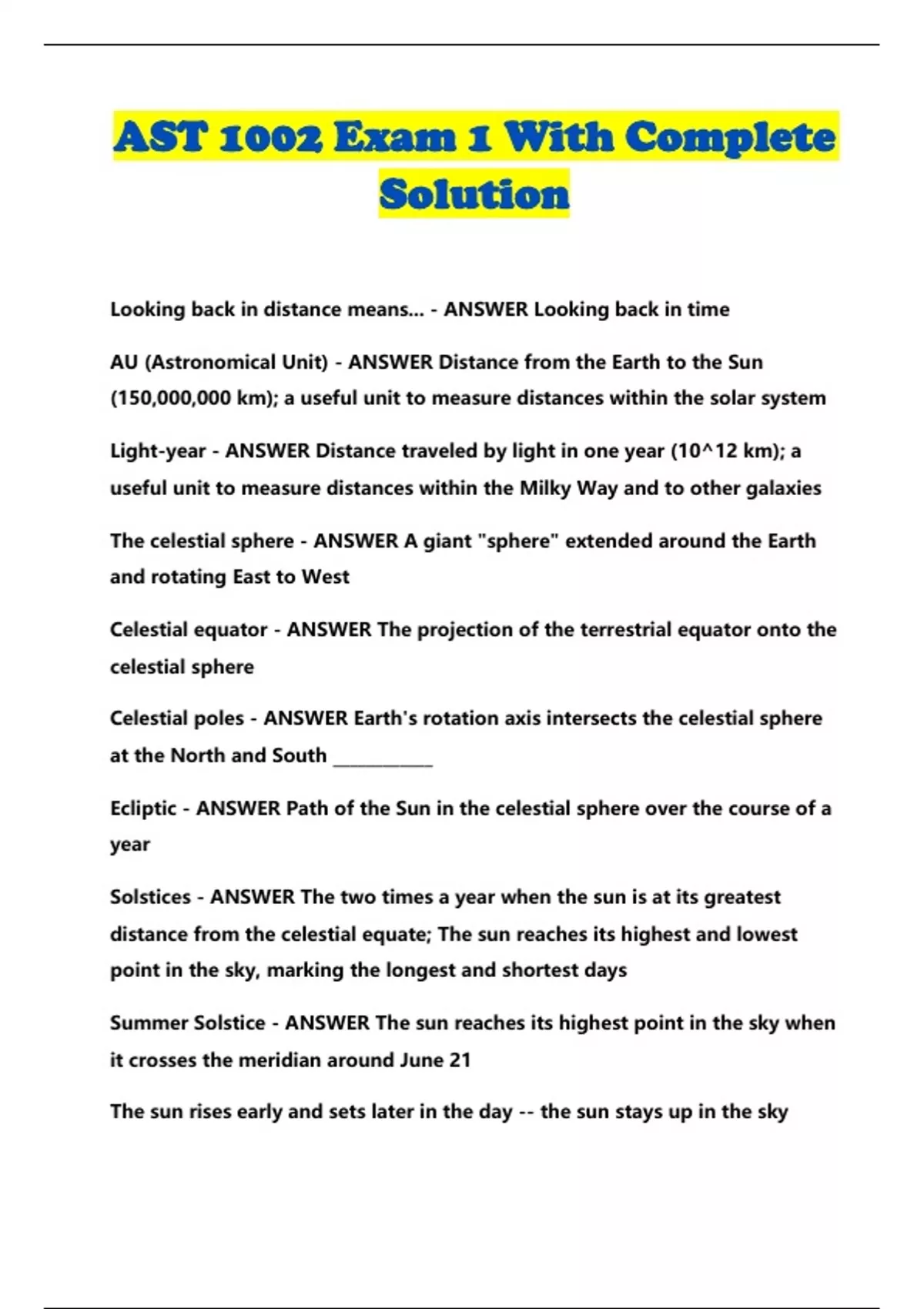AST 1002 Exam 1 With Complete