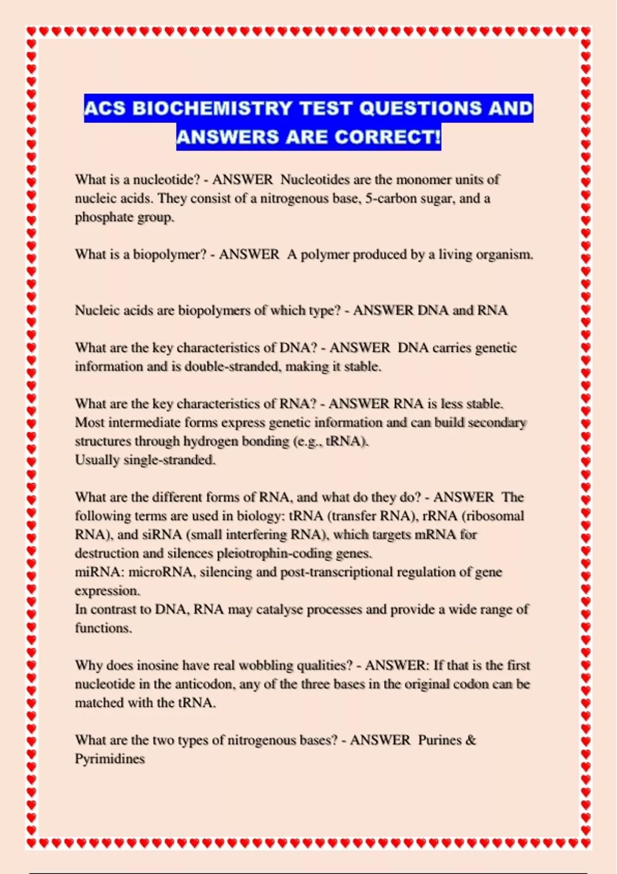 Nucleic acids are biopolymers of which type? - ANSWER DNA and RNA
