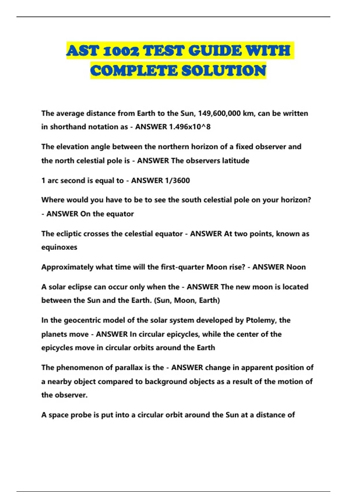 AST 1002 TEST GUIDE WITH