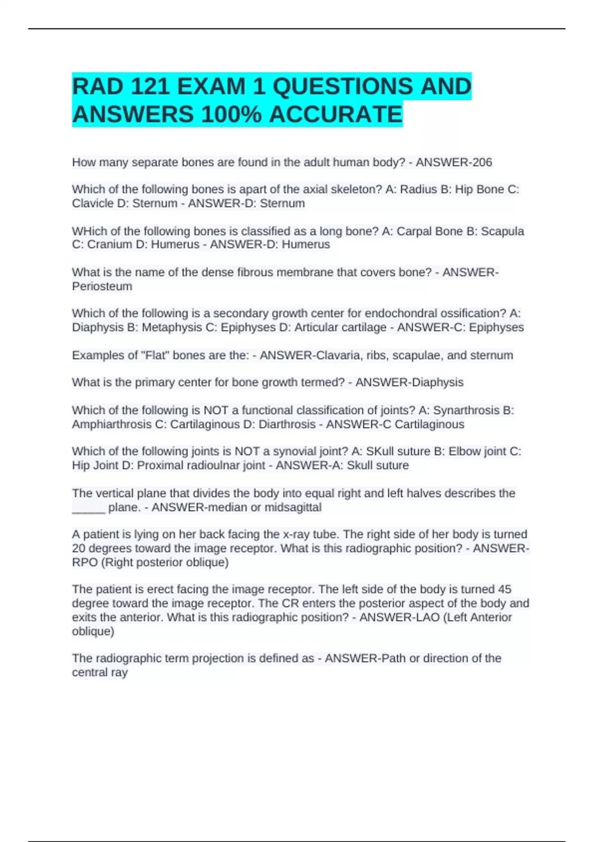 ANSWERS 100% ACCURATE