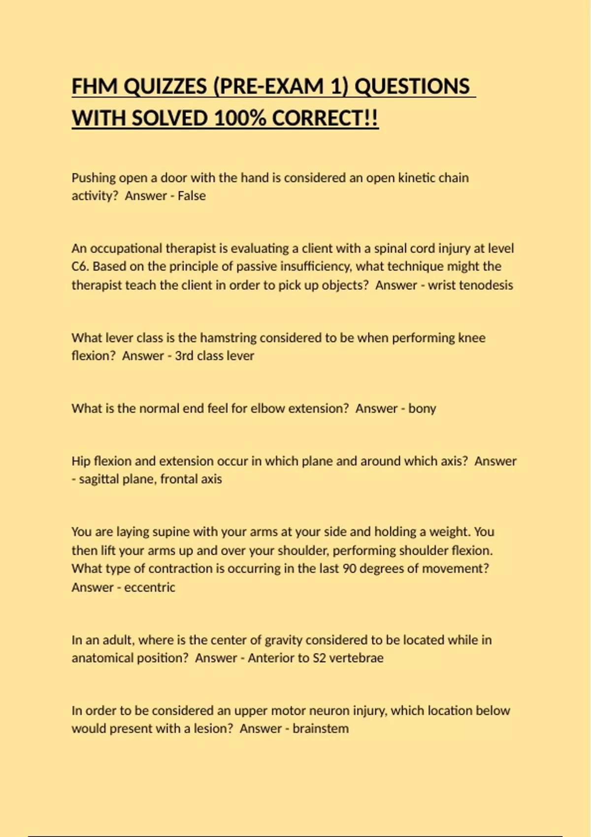 FHM QUIZZES (PRE-EXAM 1) QUESTIONS WITH SOLVED 100% CORRECT!!