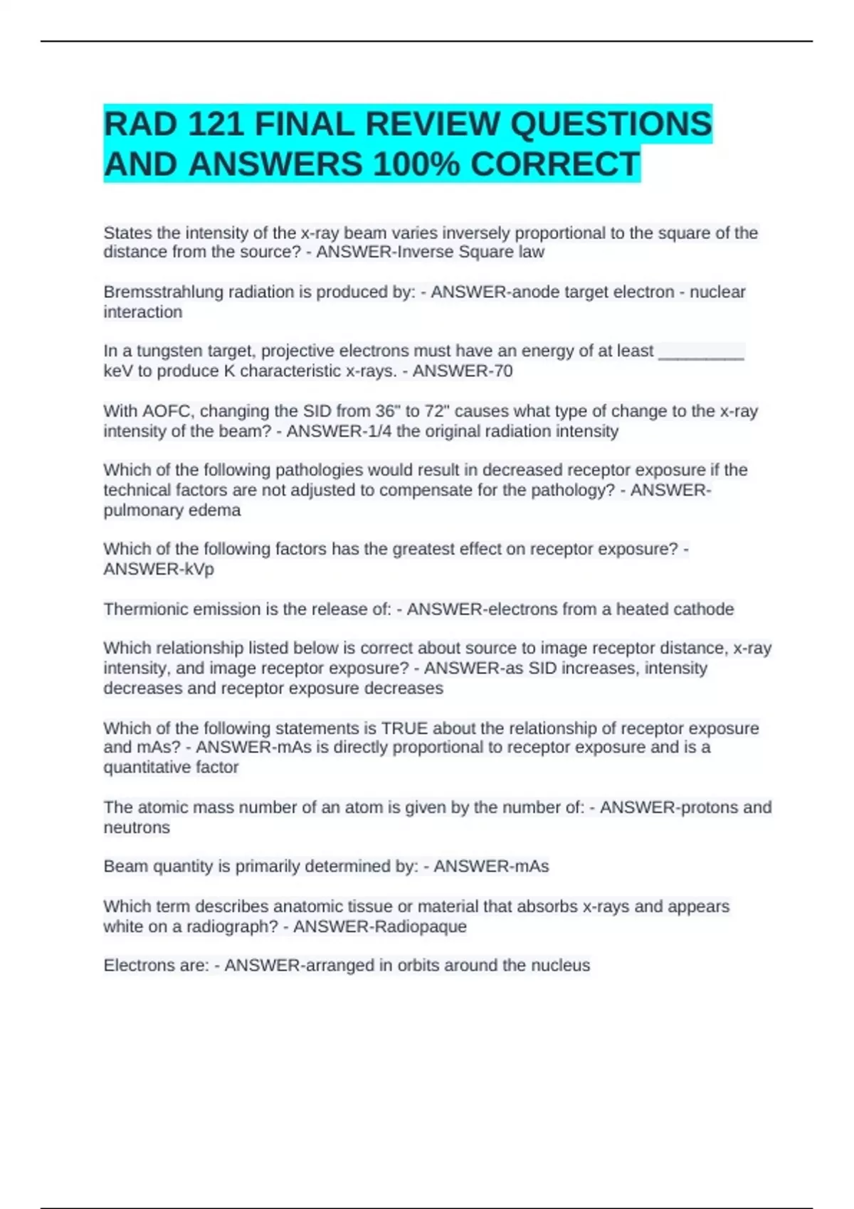 The factor that alters x-ray beam penetration is: - ANSWER-kVp