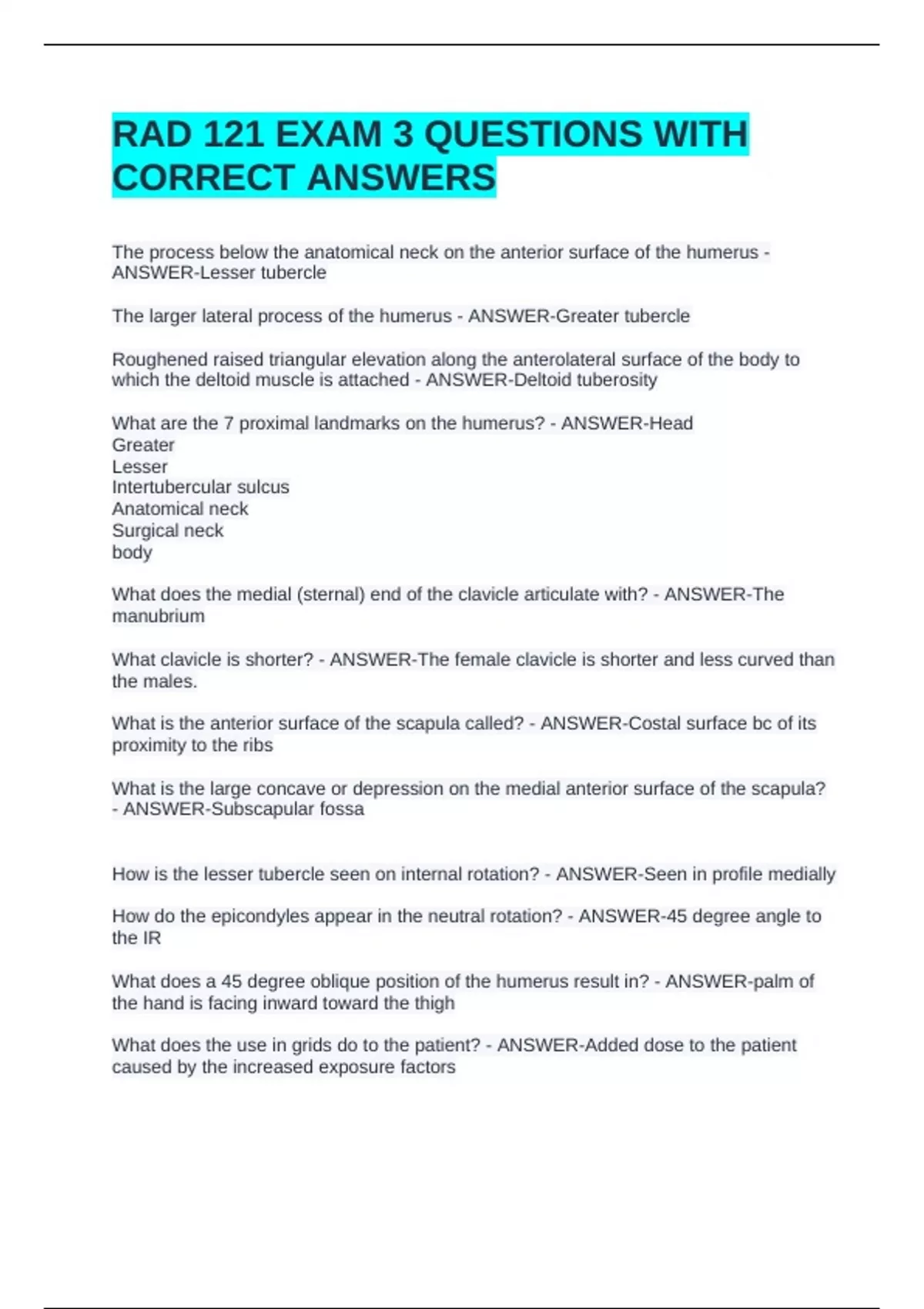 What are the 7 proximal landmarks on the humerus? - ANSWER-Head
