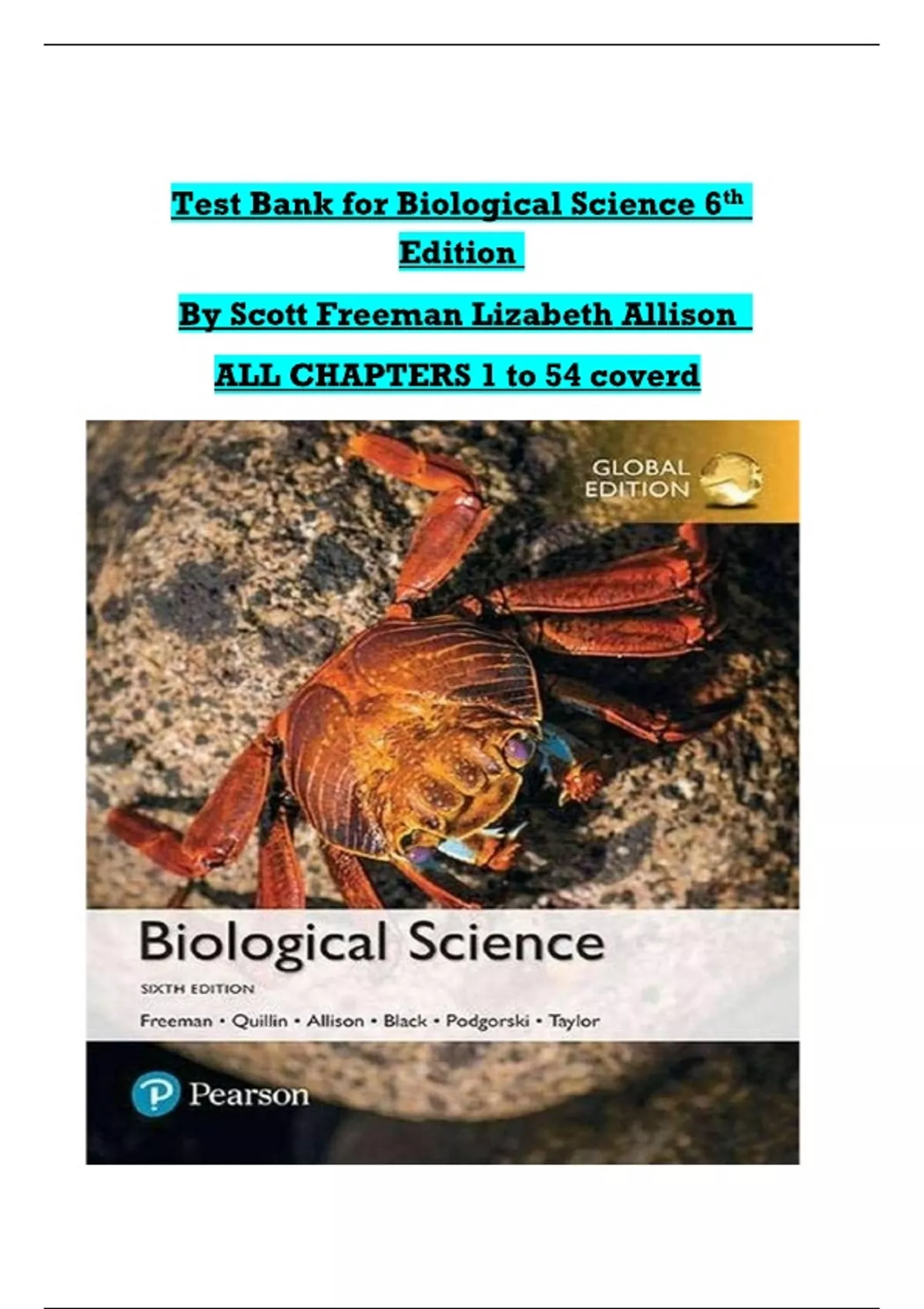 Test Bank - Biological Science, 6th Edition (Freeman, 2017) Chapter 1-54 | All Chapters Test Bank - Biological Science, 6th Edition (Freeman, 2017) Chapter 1-54 | All Chapters