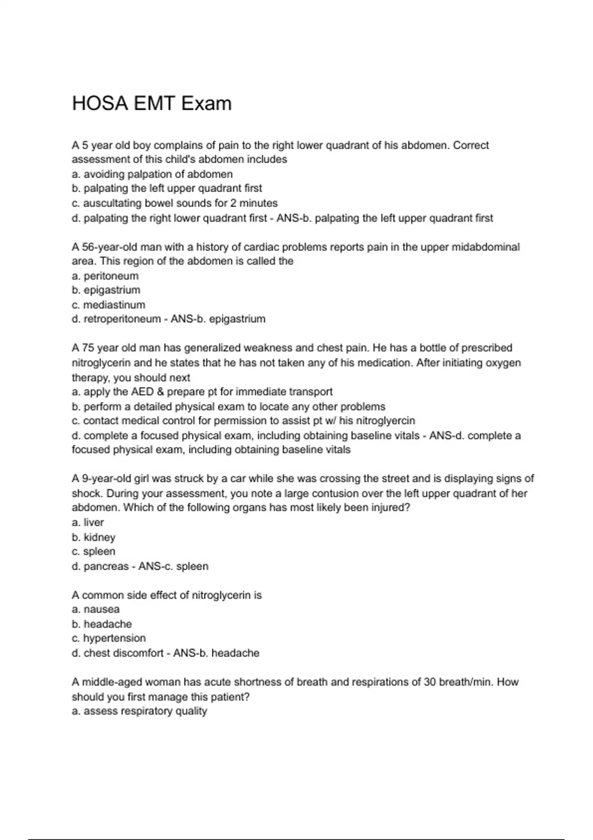 HOSA EMT Exam