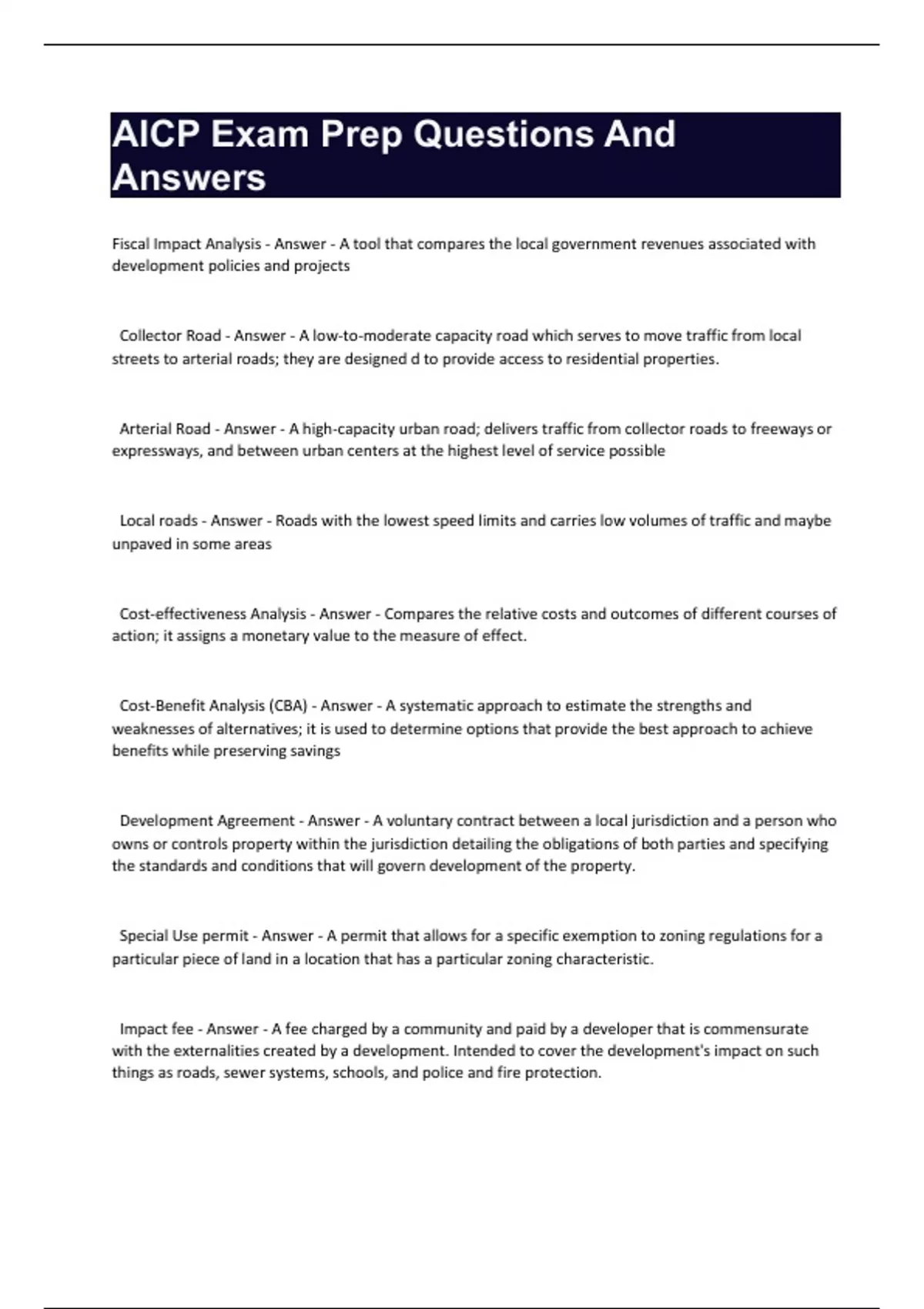 AICP Exam Prep Questions And