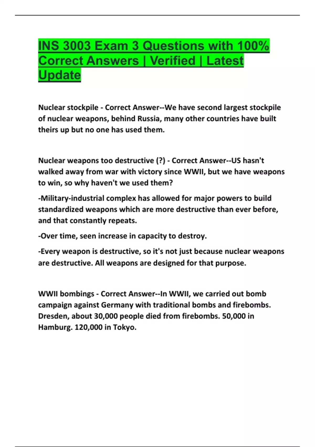 Correct Answers | Verified | Latest