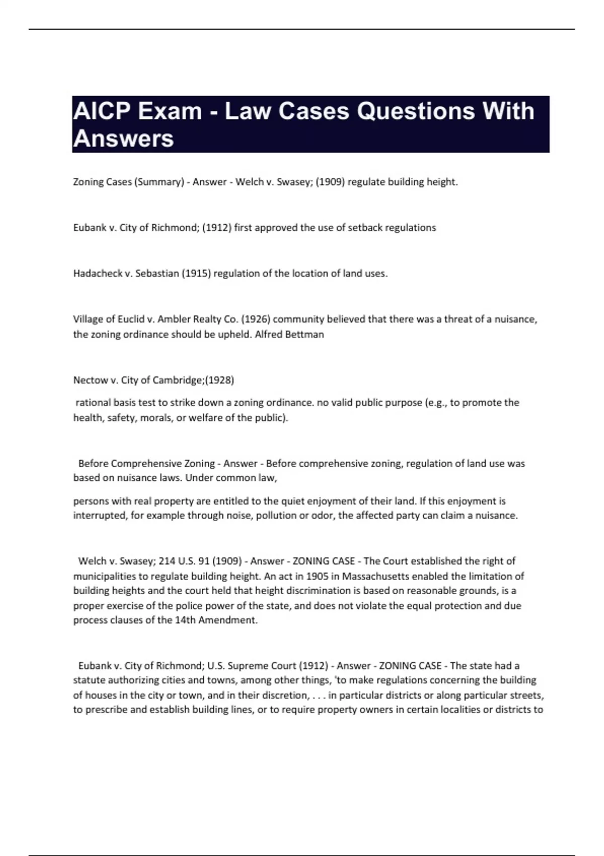 Welch v. Swasey; 214 U.S. 91 (1909) - Answer - ZONING CASE - The Court established the right of