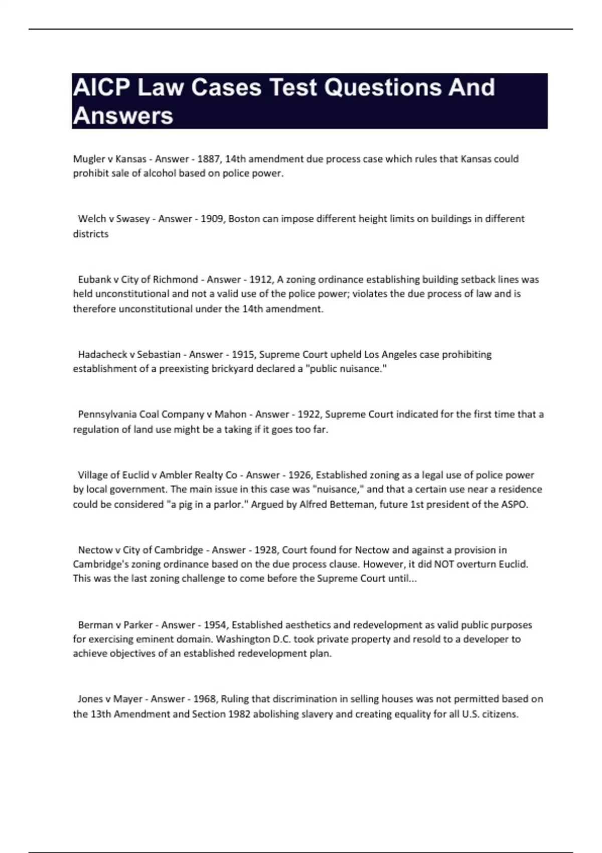 AICP Law Cases Test Questions And
