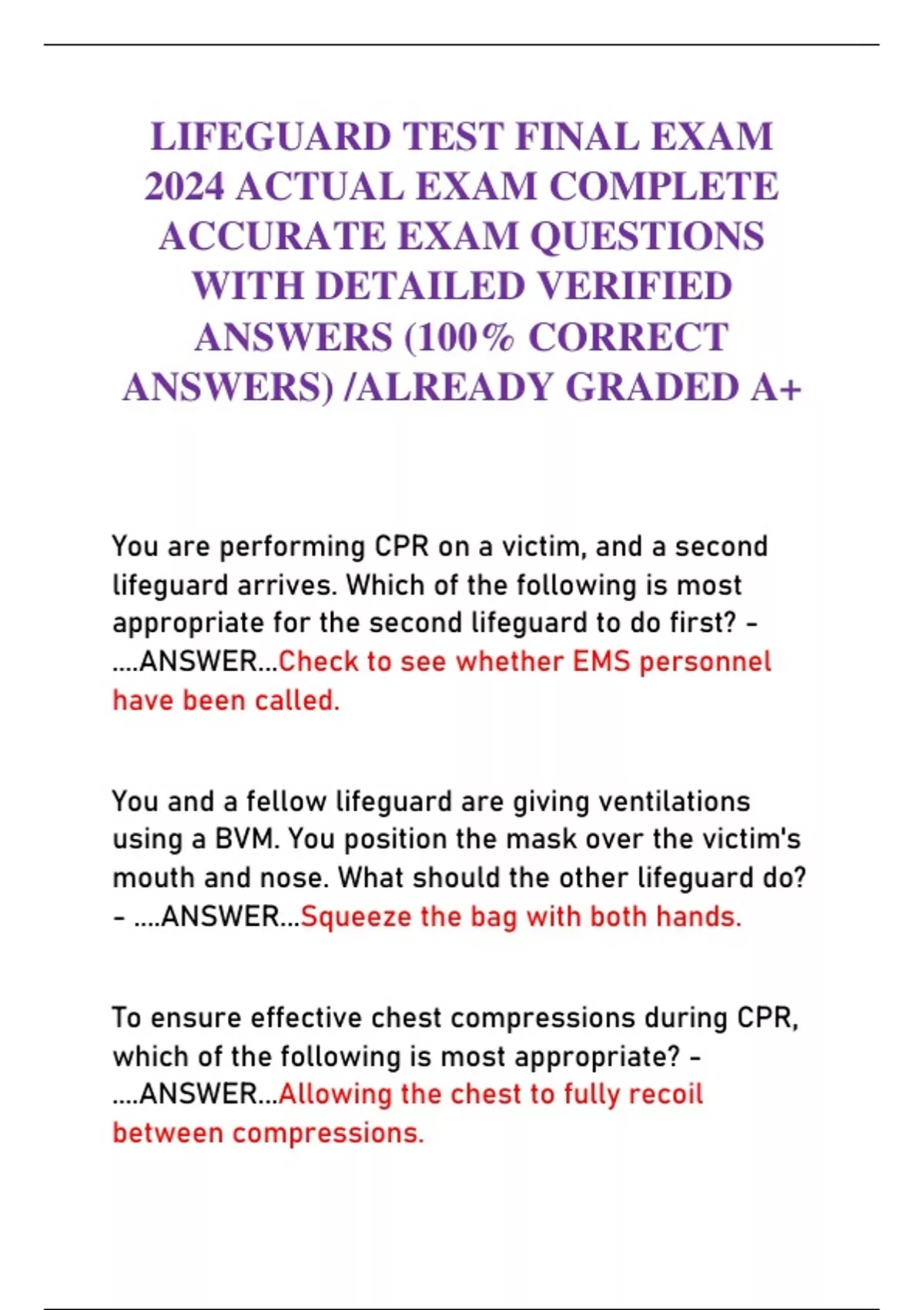 LIFEGUARD TEST FINAL EXAM