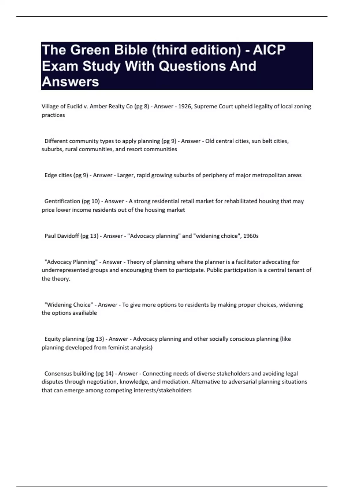 Different community types to apply planning (pg 9) - Answer - Old central cities, sun belt cities,