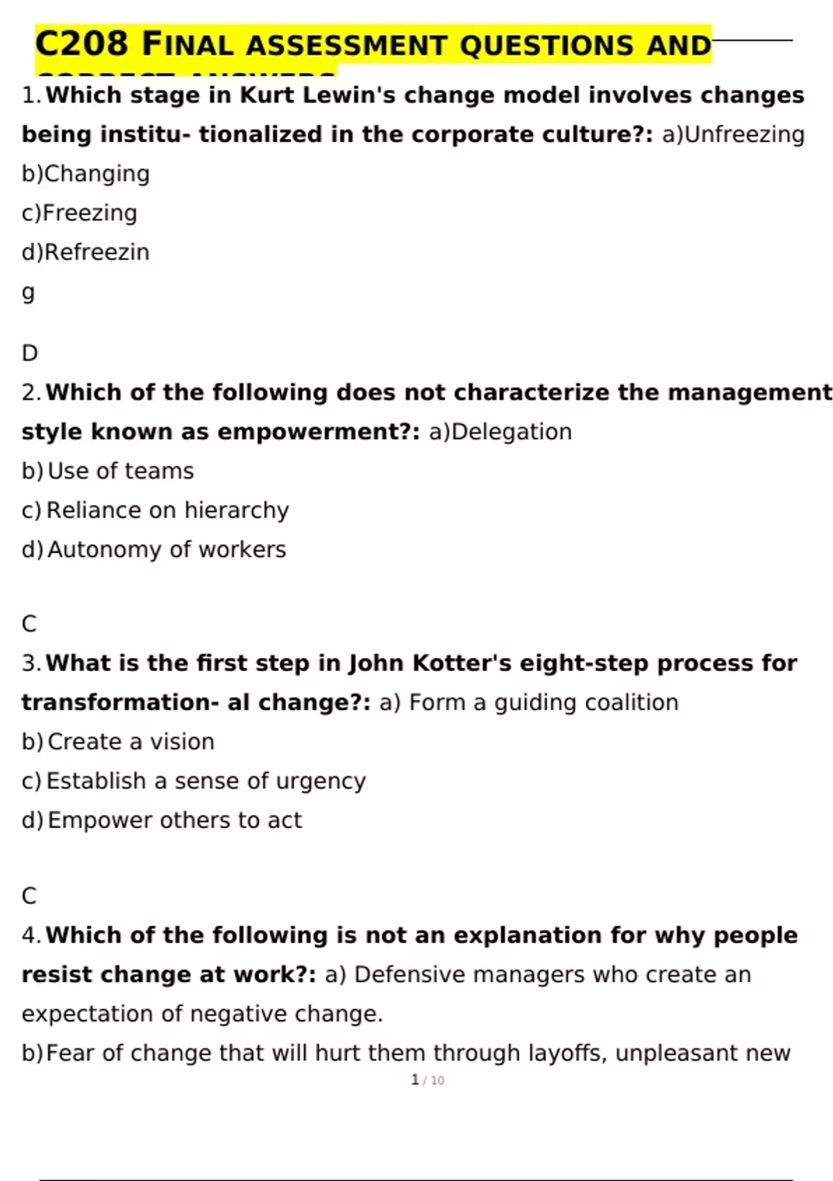, C208 FINAL ASSESSMENT QUESTIONS AND