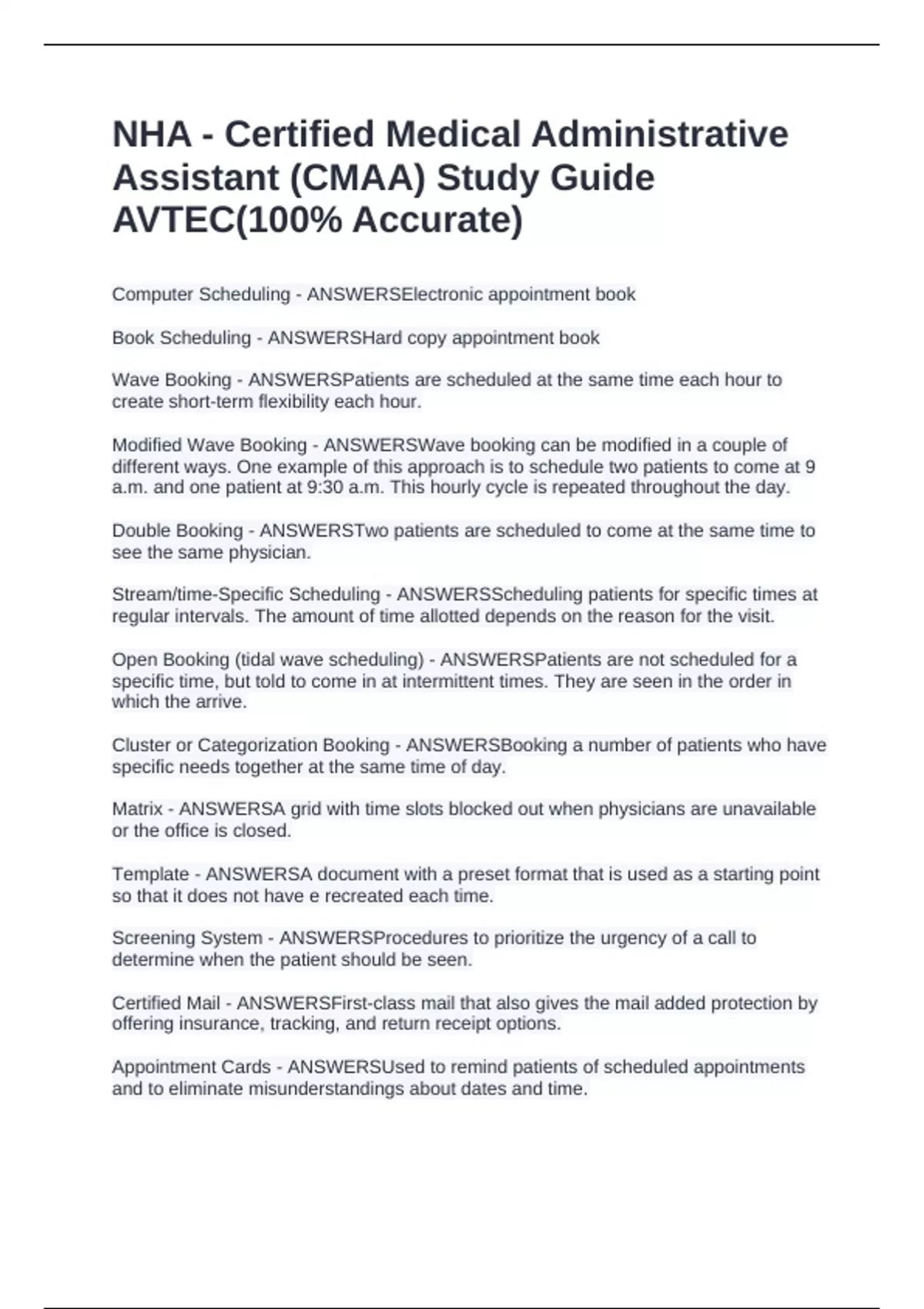 NHA - Certified Medical Administrative Assistant (CMAA) Study Guide AVTEC(100% Accurate