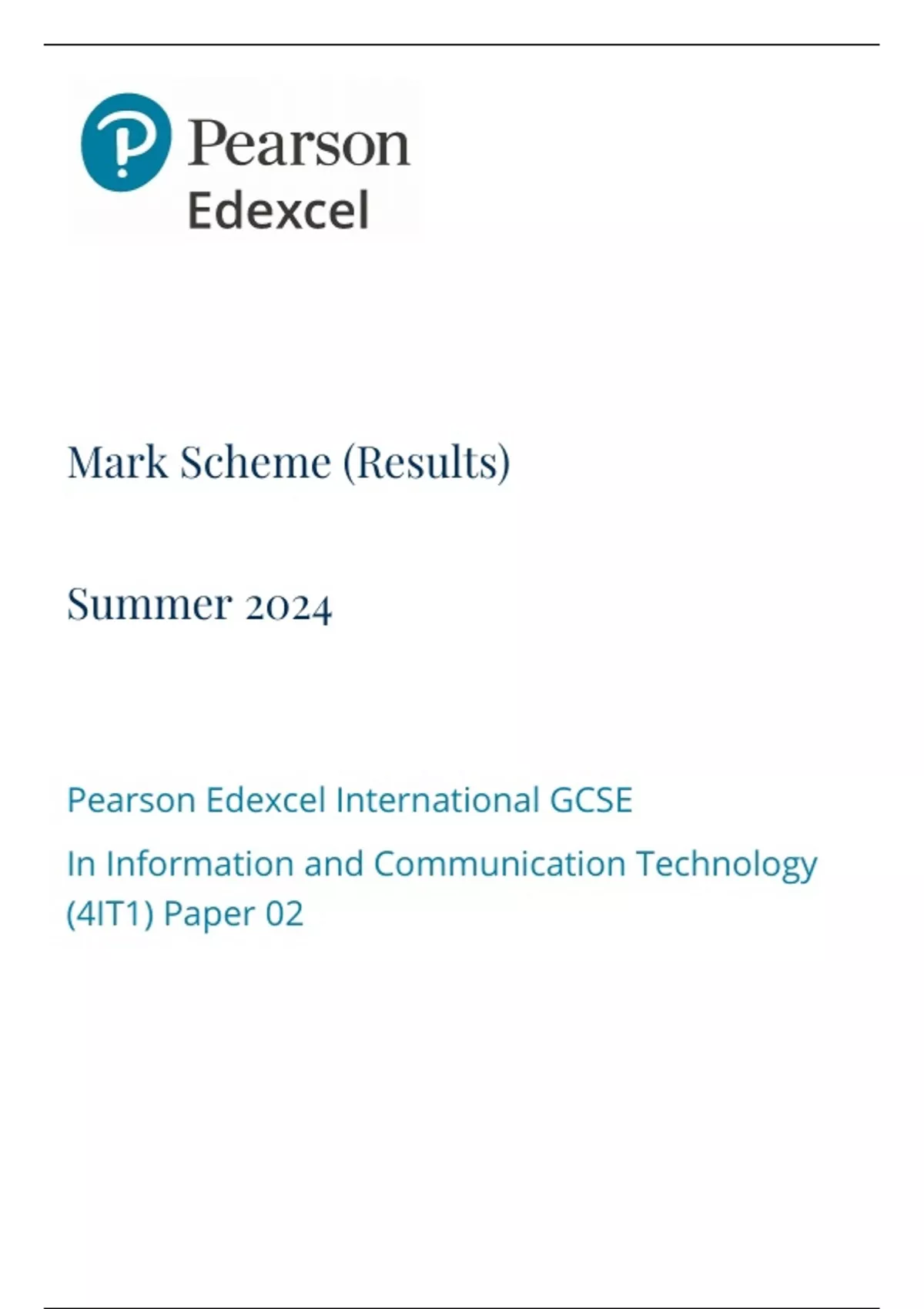 Pearson Edexcel International GCSE In Information and Communication Technology (4IT1) Paper 02 Mark Scheme Summer 2024