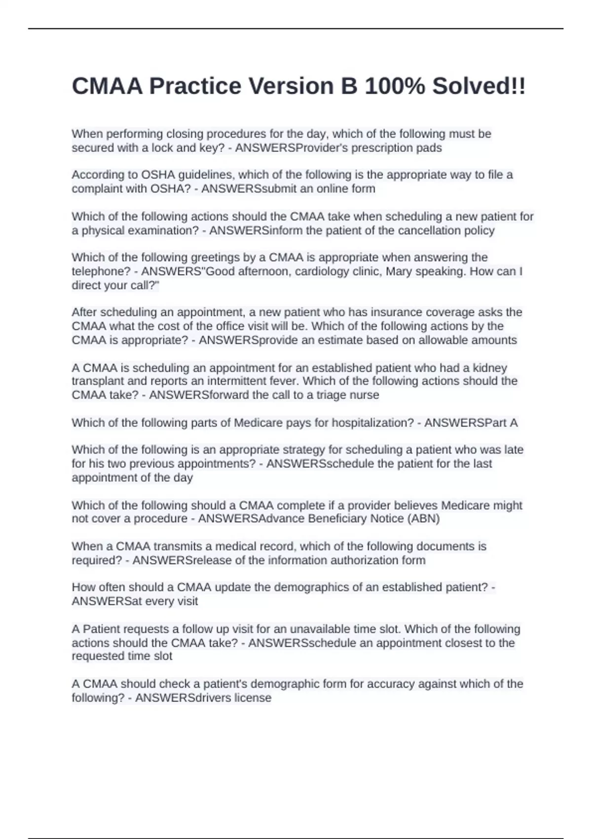 CMAA Practice Version B 100% Solved!!