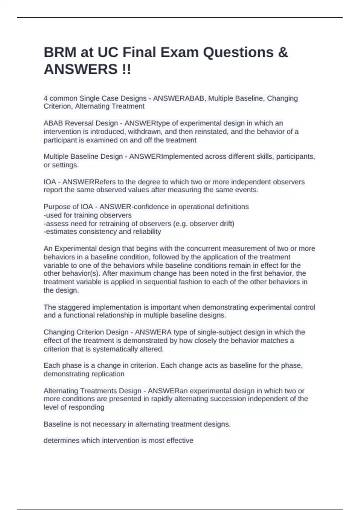 , Single Case Design Questions - ANSWERDemonstration - to what extent will the