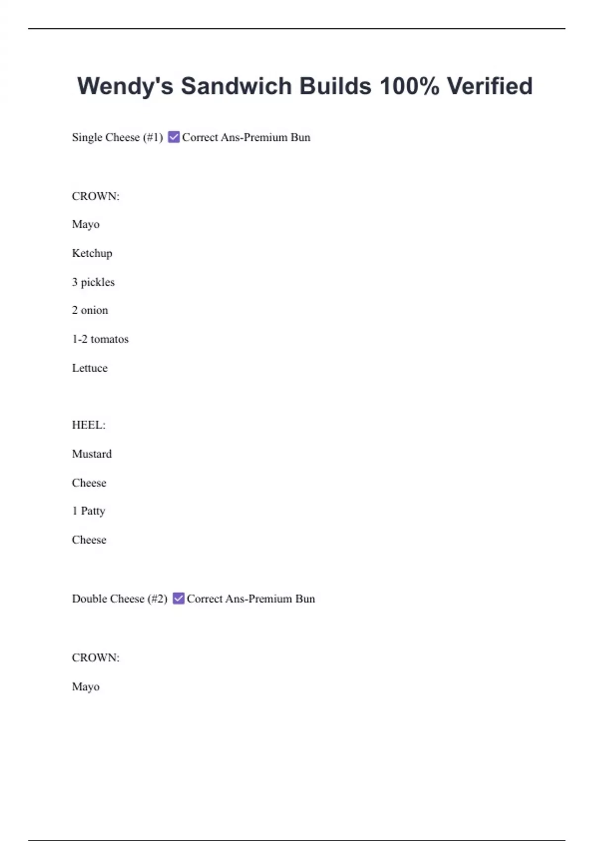 Double Cheese (#2) Correct Ans-Premium Bun