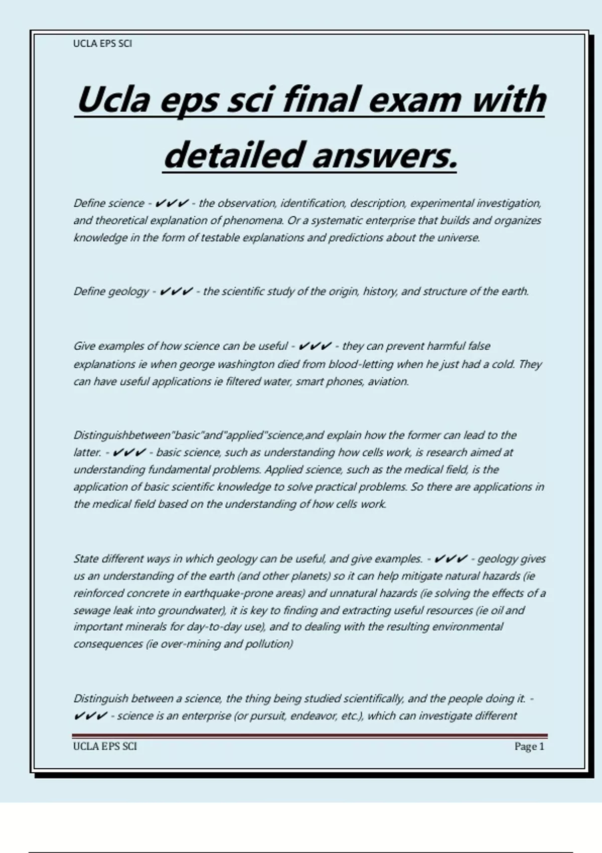 Ucla eps sci final exam with