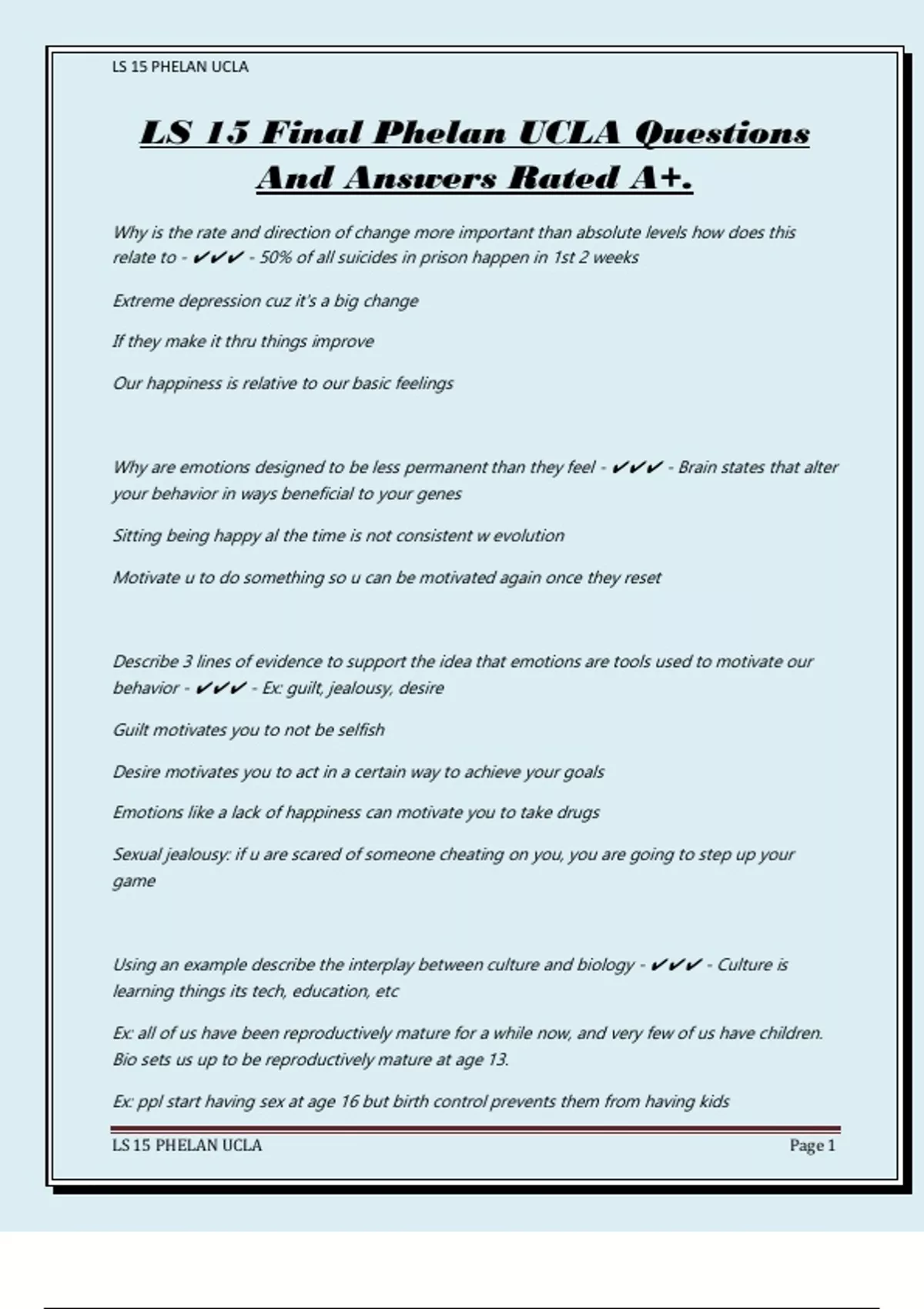 LS 15 Final Phelan UCLA Questions And Answers Rated A+.