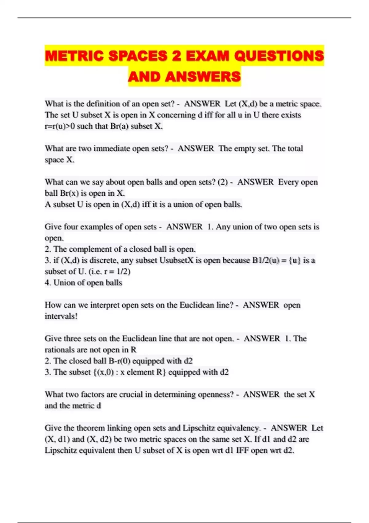 What is the definition of an open set? - ANSWER Let (X,d) be a metric space.