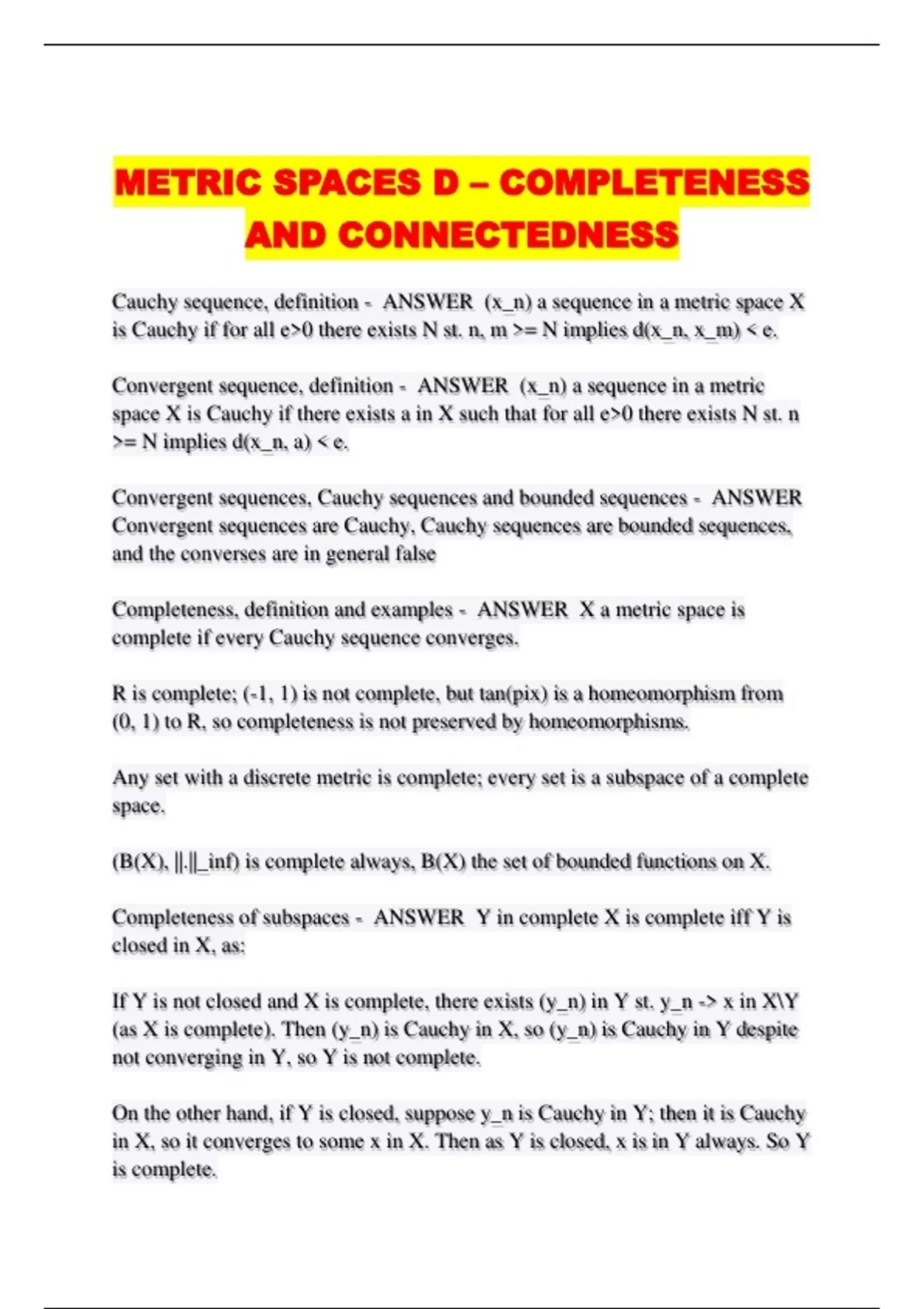 METRIC SPACES D – COMPLETENESS