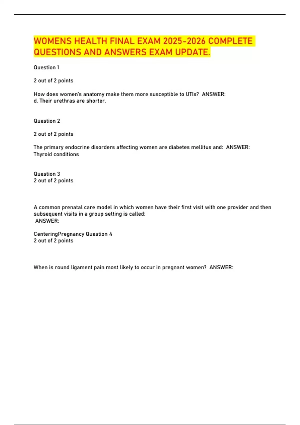 QUESTIONS AND ANSWERS EXAM UPDATE.