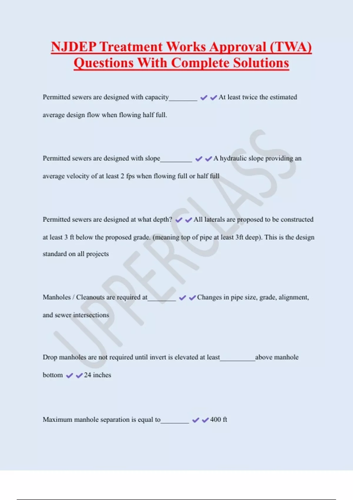 Permitted sewers are designed with capacity________ At least twice the estimated