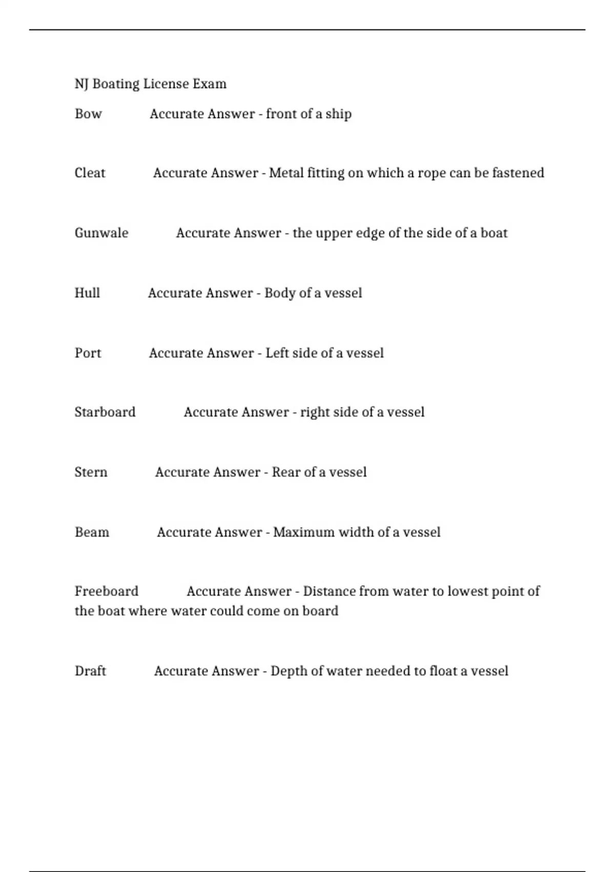 NJ BOATING LICENSE EXAM WITH ACCURATE ANSWERS