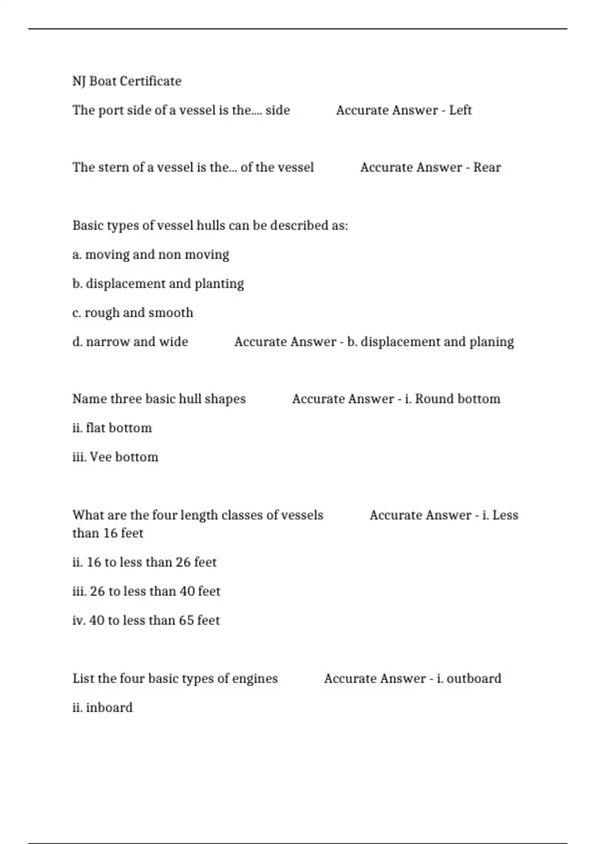 NJ BOAT CERTIFICATE QUESTIONS WITH ACCURATE ANSWERS