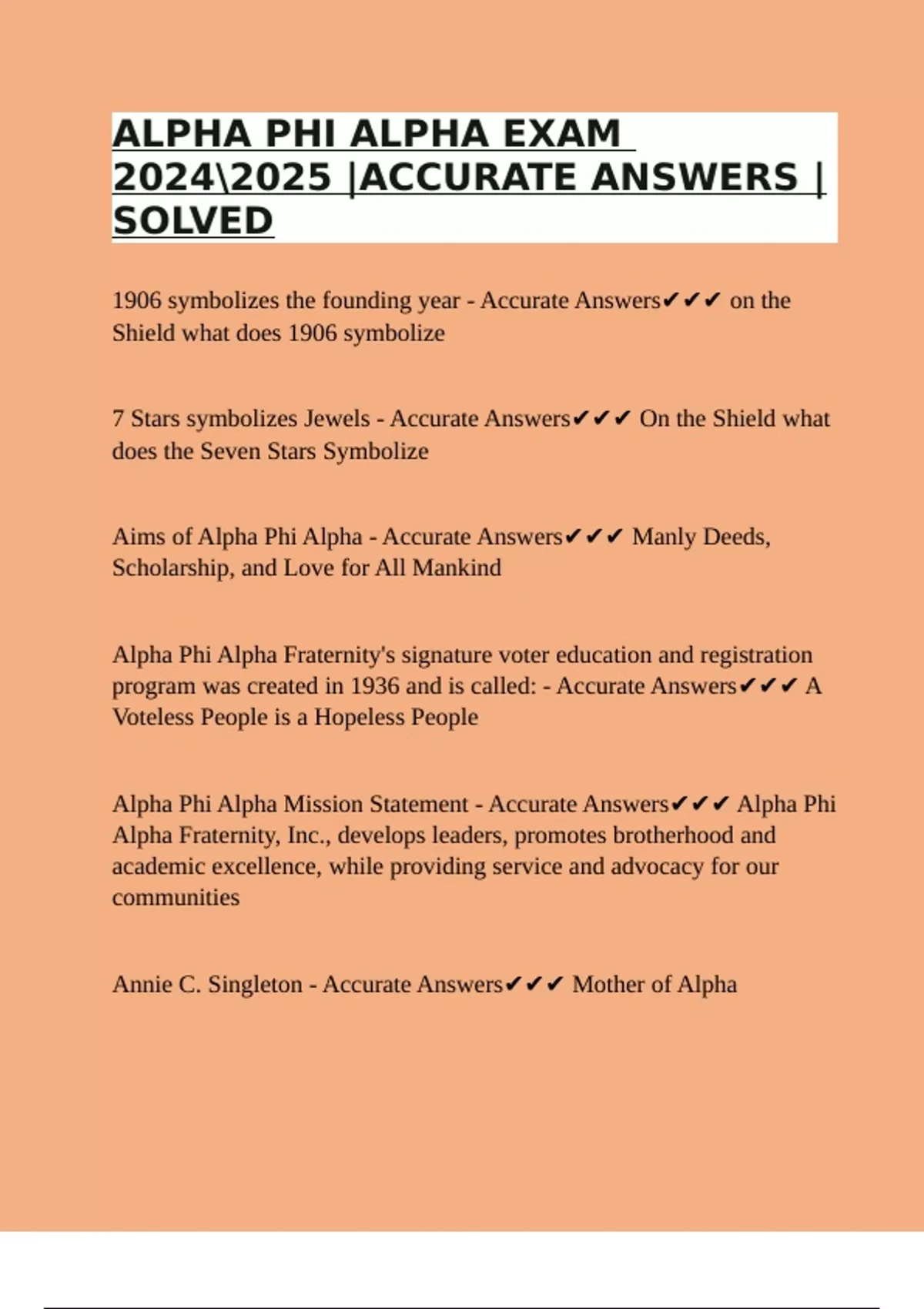Alpha Phi Alpha Mission Statement - Accurate Answers✔✔✔ Alpha Phi