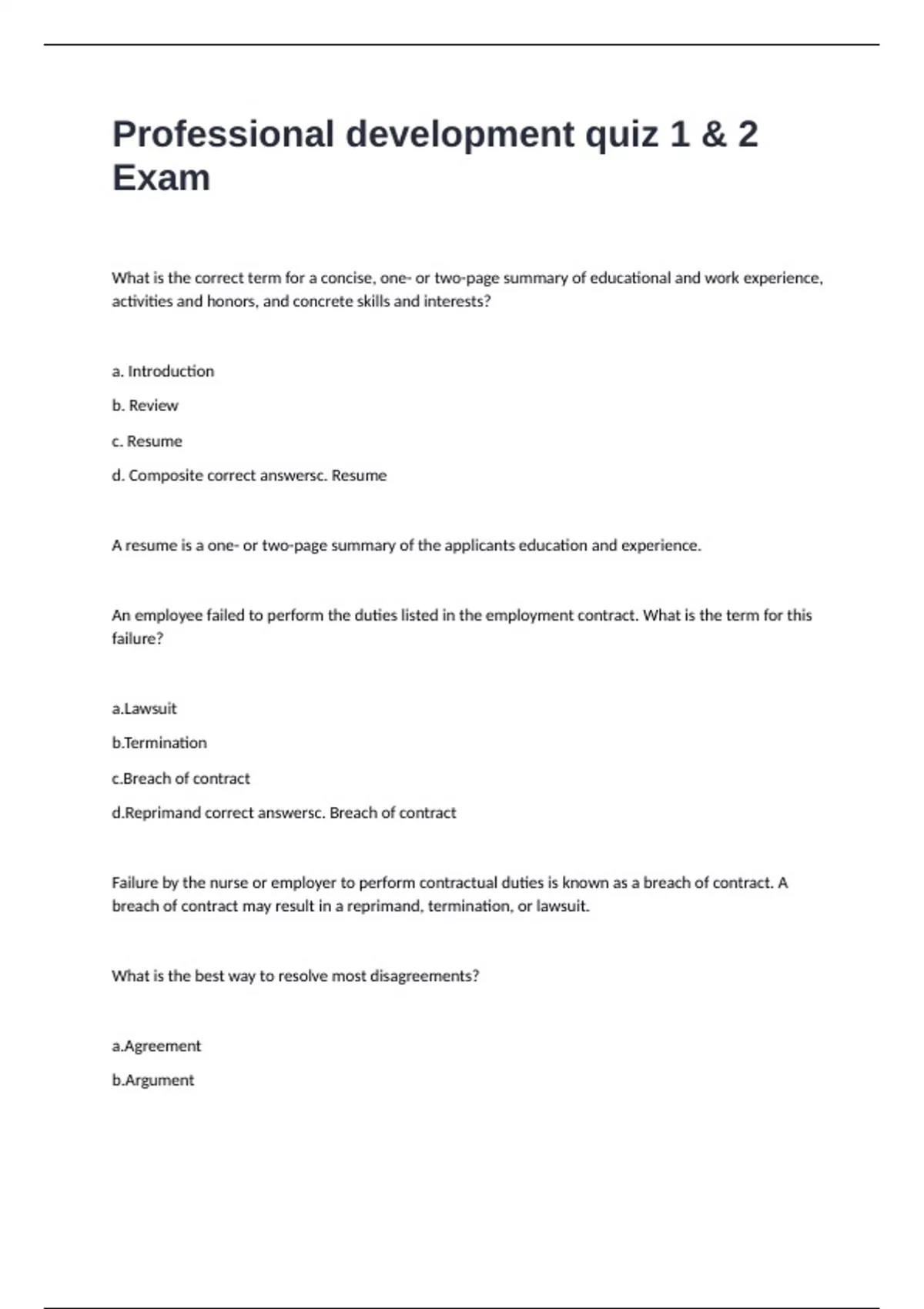 d. Composite correct answersc. Resume