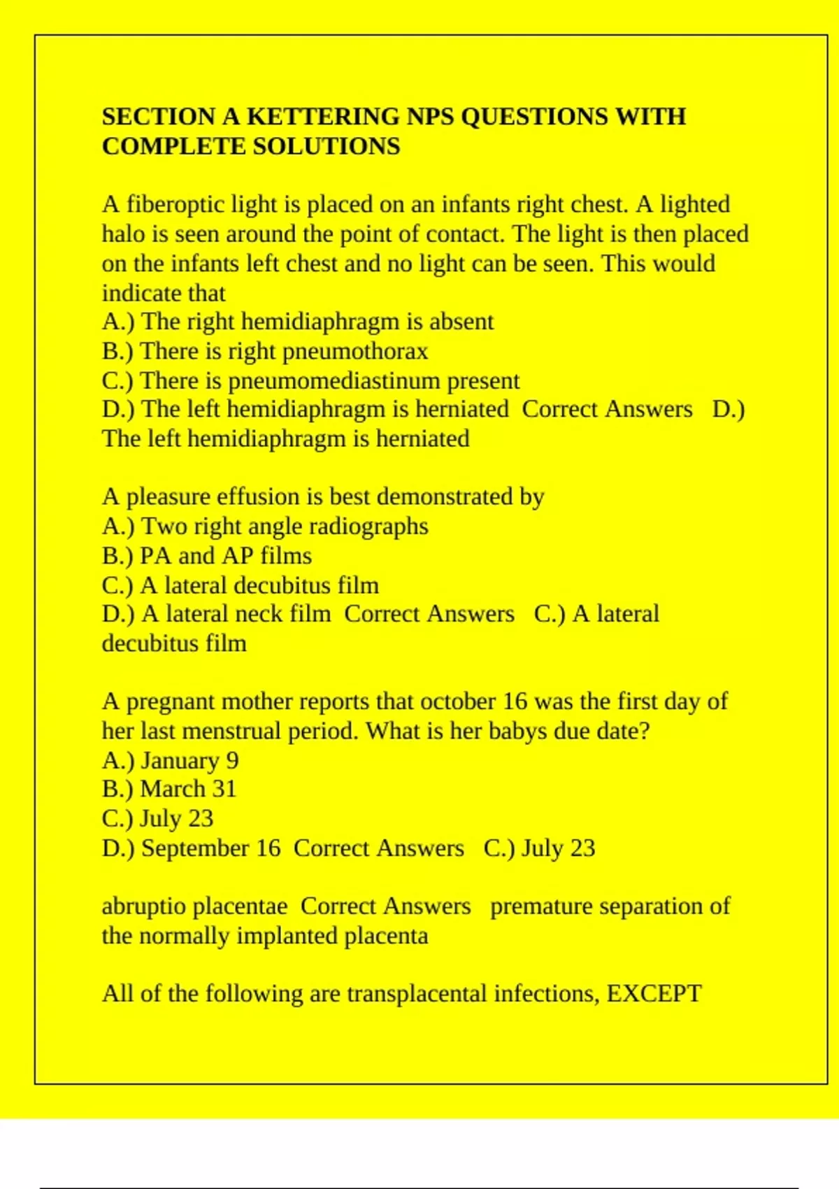 D.) Pleural effusion Correct Answers B.) Atelectasis