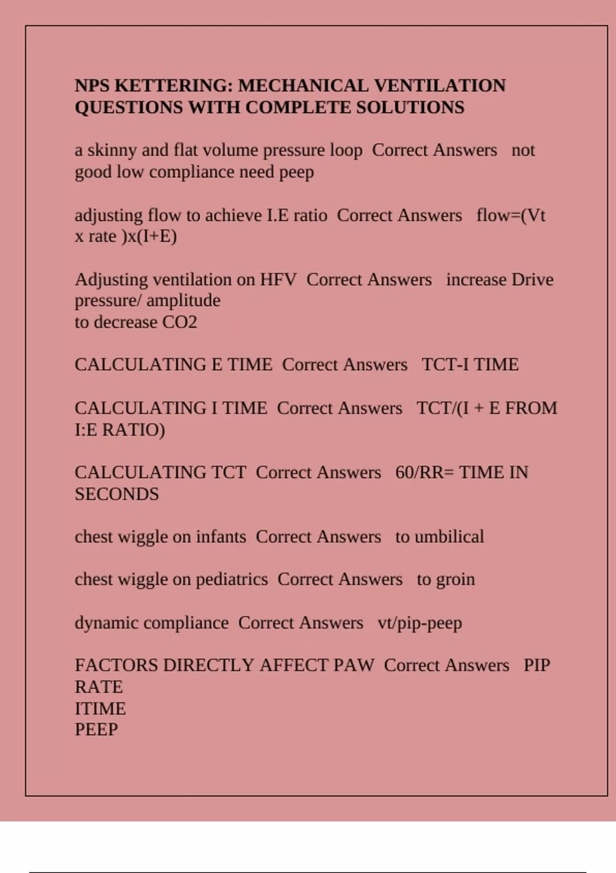 NPS KETTERING: MECHANICAL VENTILATION QUESTIONS WITH COMPLETE SOLUTIONS
