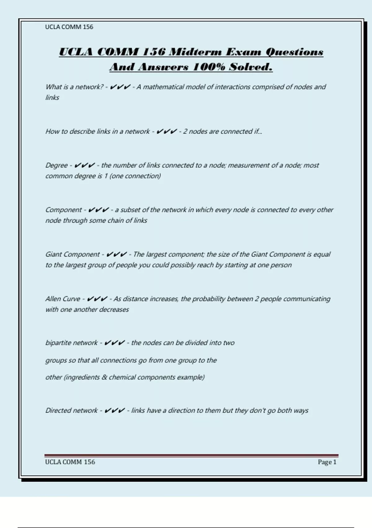 UCLA COMM 156 Midterm Exam Questions And Answers 100% Solved.