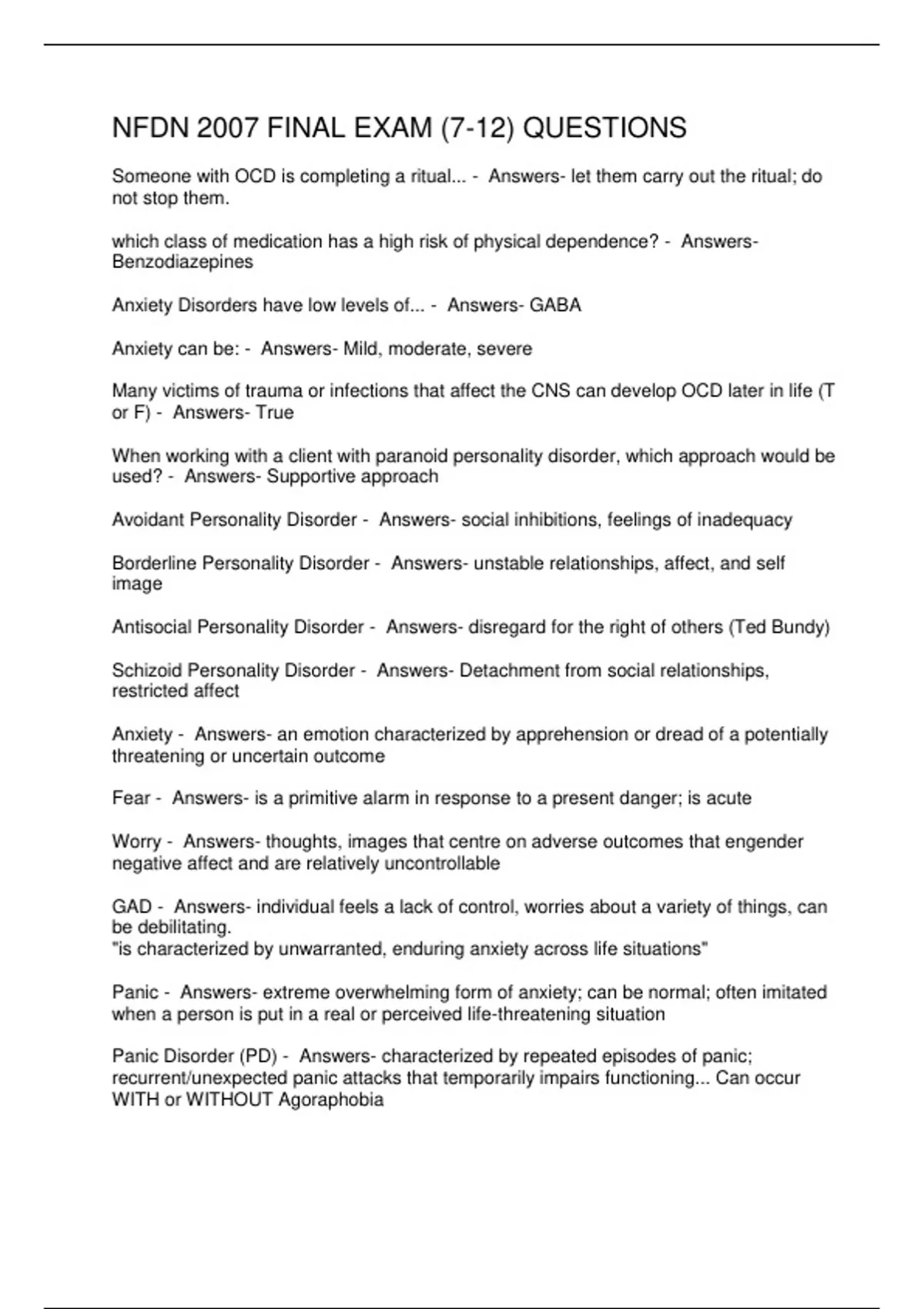 NFDN 2007 FINAL EXAM (7-12) QUESTIONS 2024