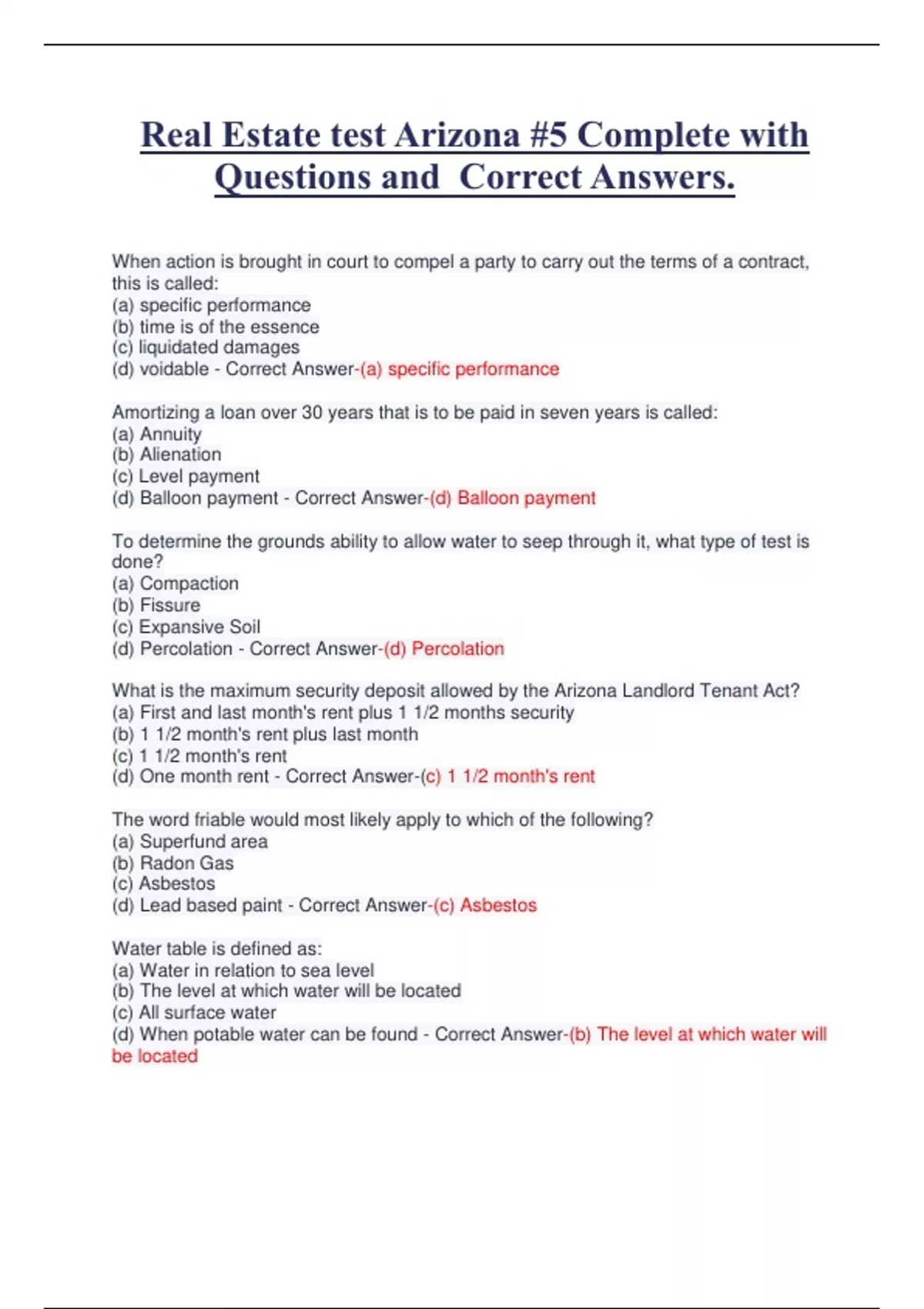 Questions and Correct Answers.