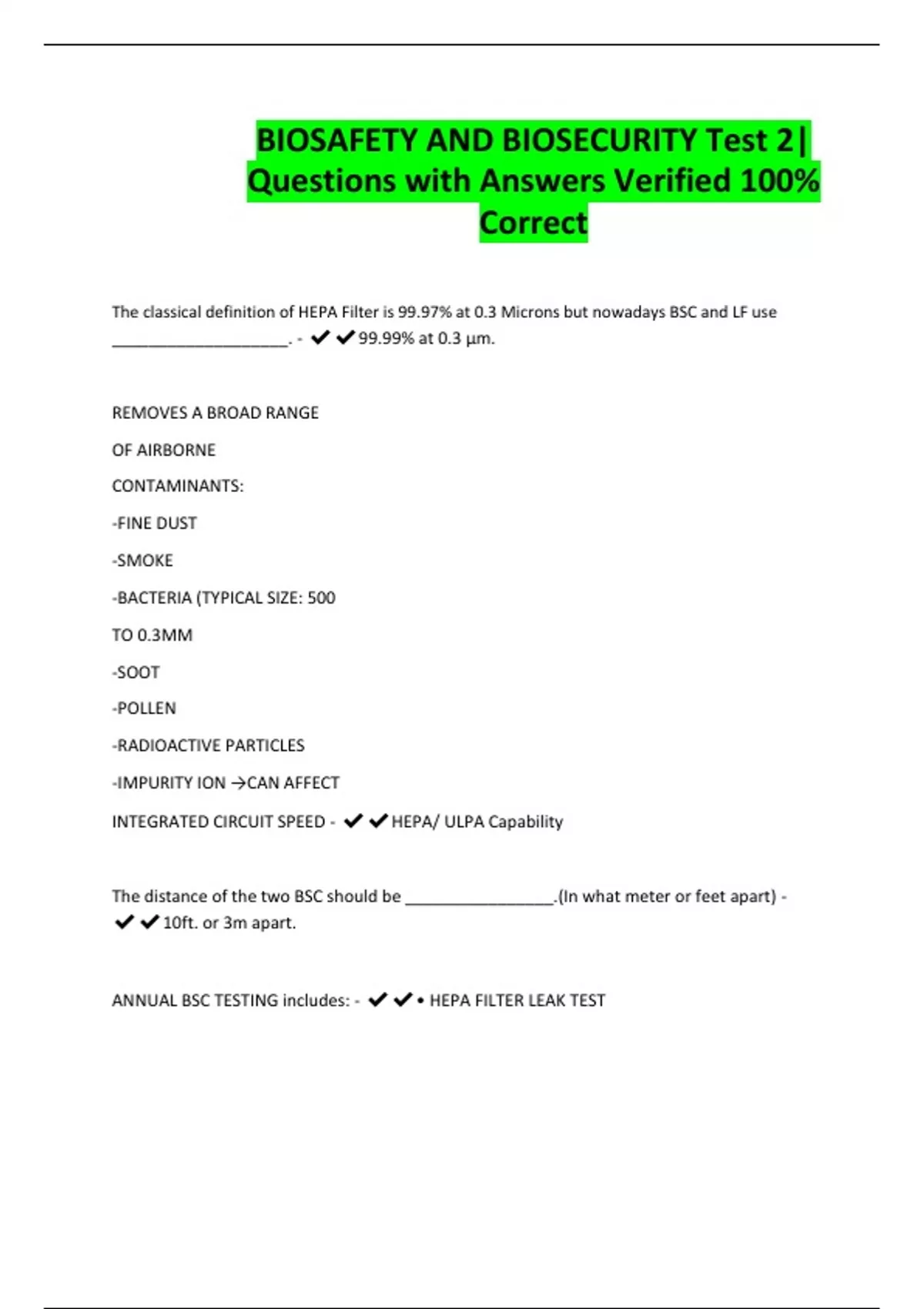 BIOSAFETY AND BIOSECURITY Test 2| Questions with Answers Verified 100% Correct