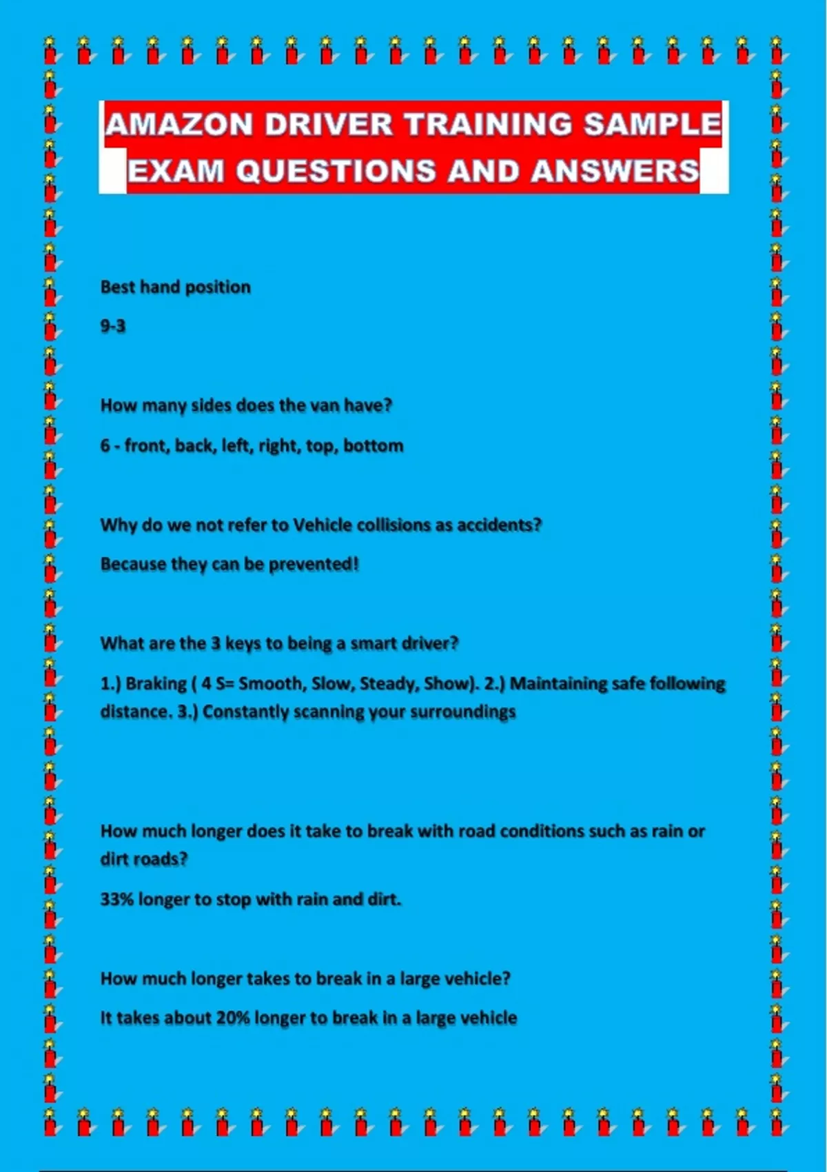 AMAZON DRIVER TRAINING SAMPLE EXAM QUESTIONS AND ANSWERS