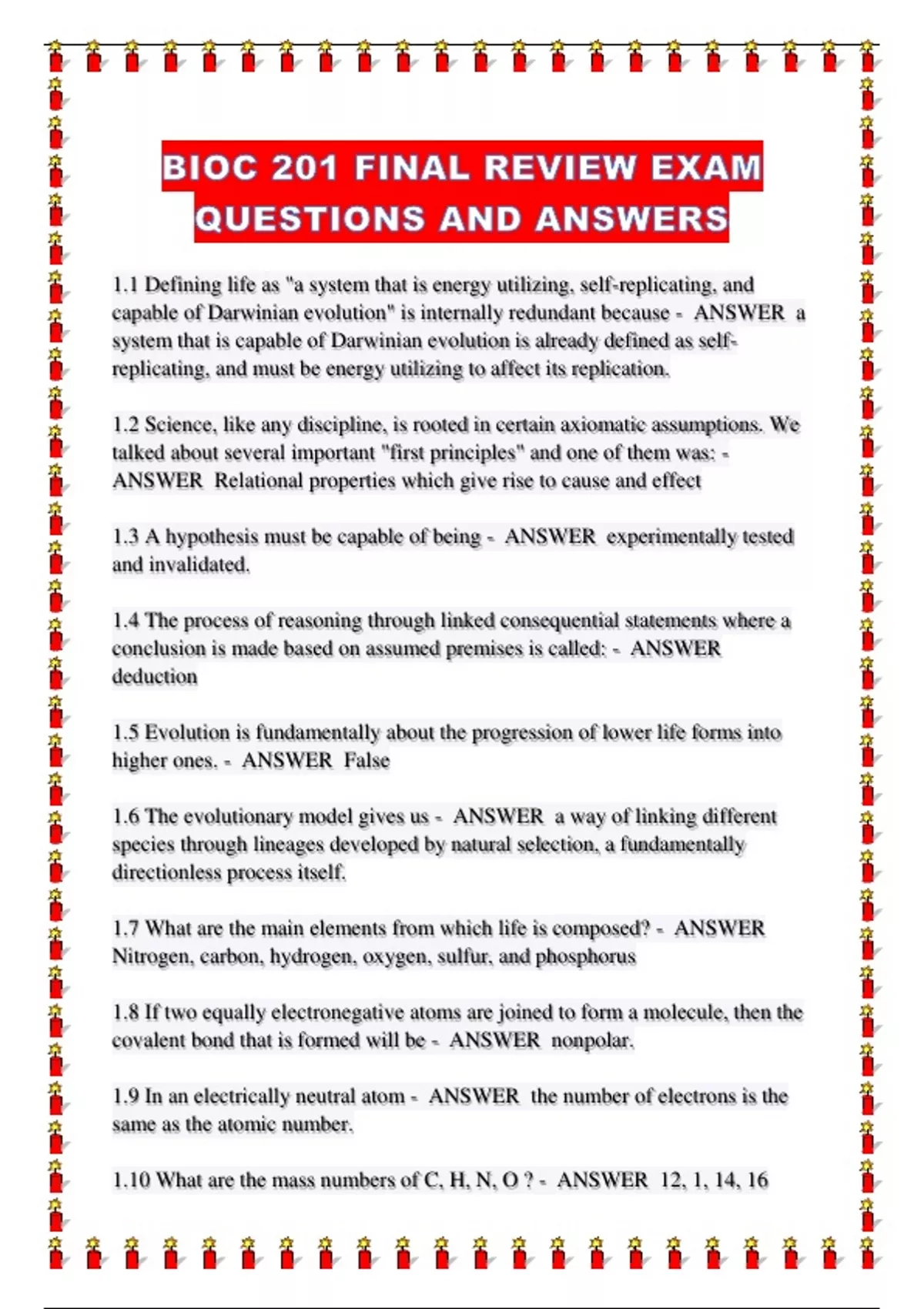 BIOC 201 FINAL REVIEW EXAM QUESTIONS AND ANSWERS...