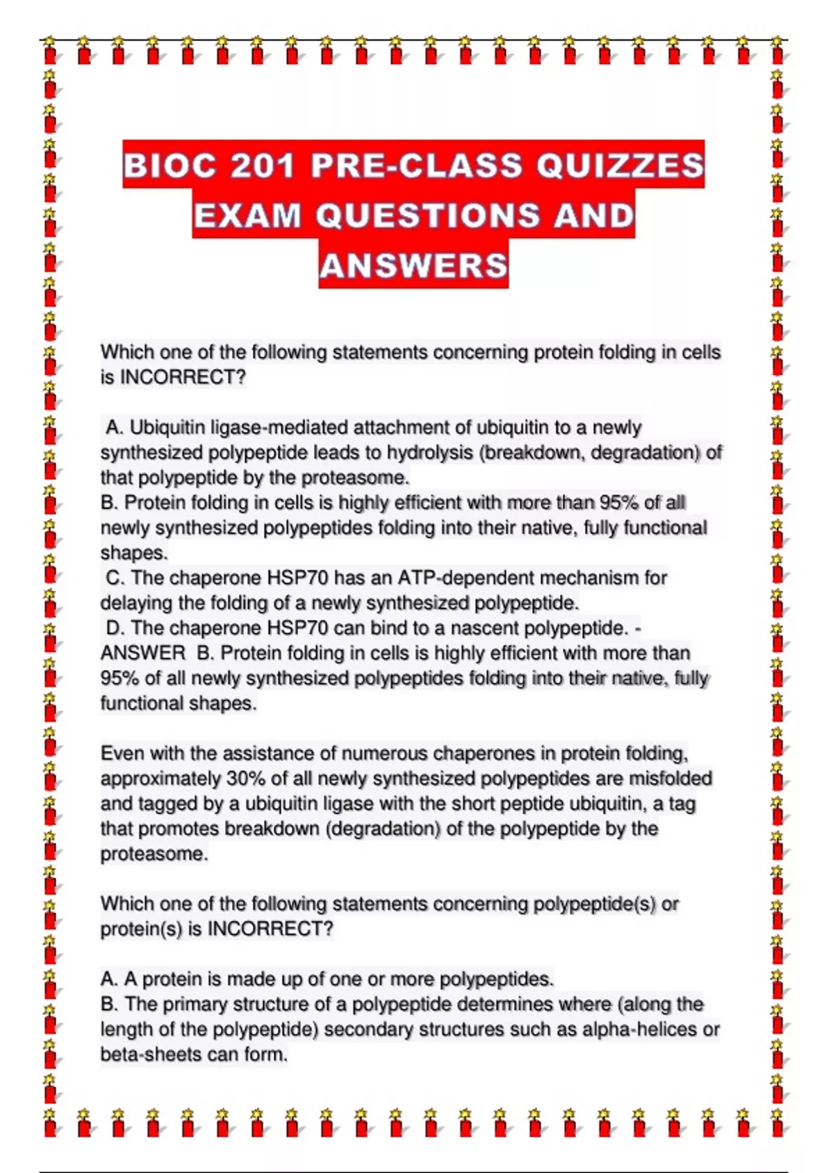 BIOC 201 PRE-CLASS QUIZZES EXAM QUESTIONS AND ANSWERS....