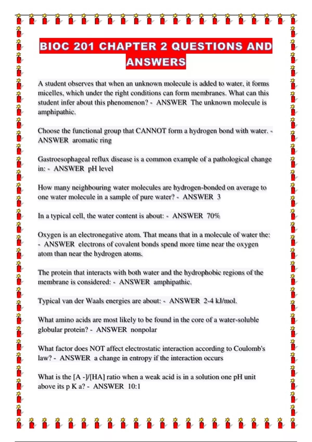 In a typical cell, the water content is about: - ANSWER 70%