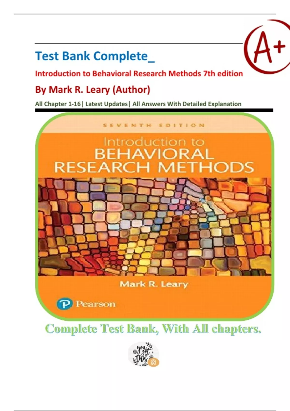 Test Bank Complete_ Introduction to Behavioral Research Methods 7th edition By Mark R. Leary| All Chapter 1-16| Latest Updates| All Answers With Detailed Explanation