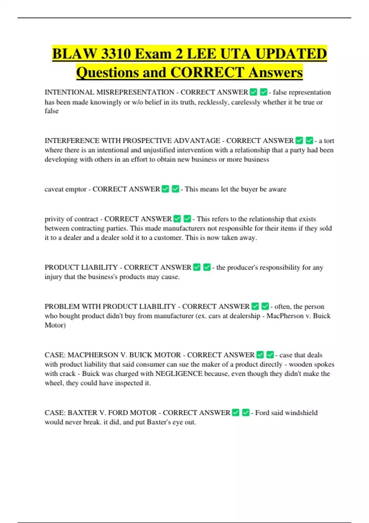 INTENTIONAL MISREPRESENTATION - CORRECT ANSWER - false representation