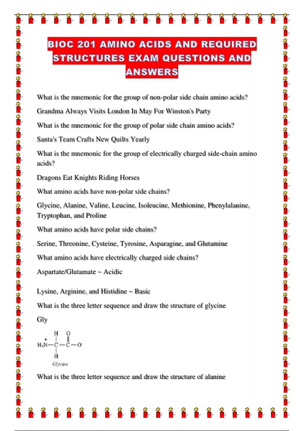 BIOC 201 AMINO ACIDS AND REQUIRED STRUCTURES EXAM QUESTIONS AND ANSWERS....
