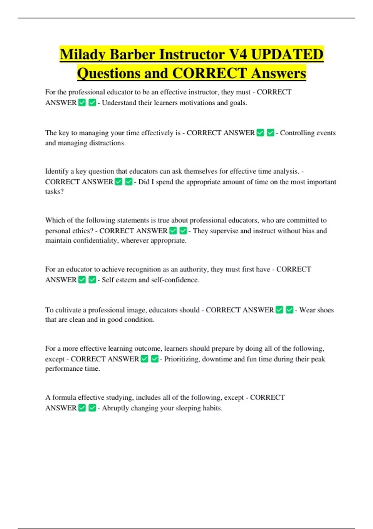 Questions and CORRECT Answers