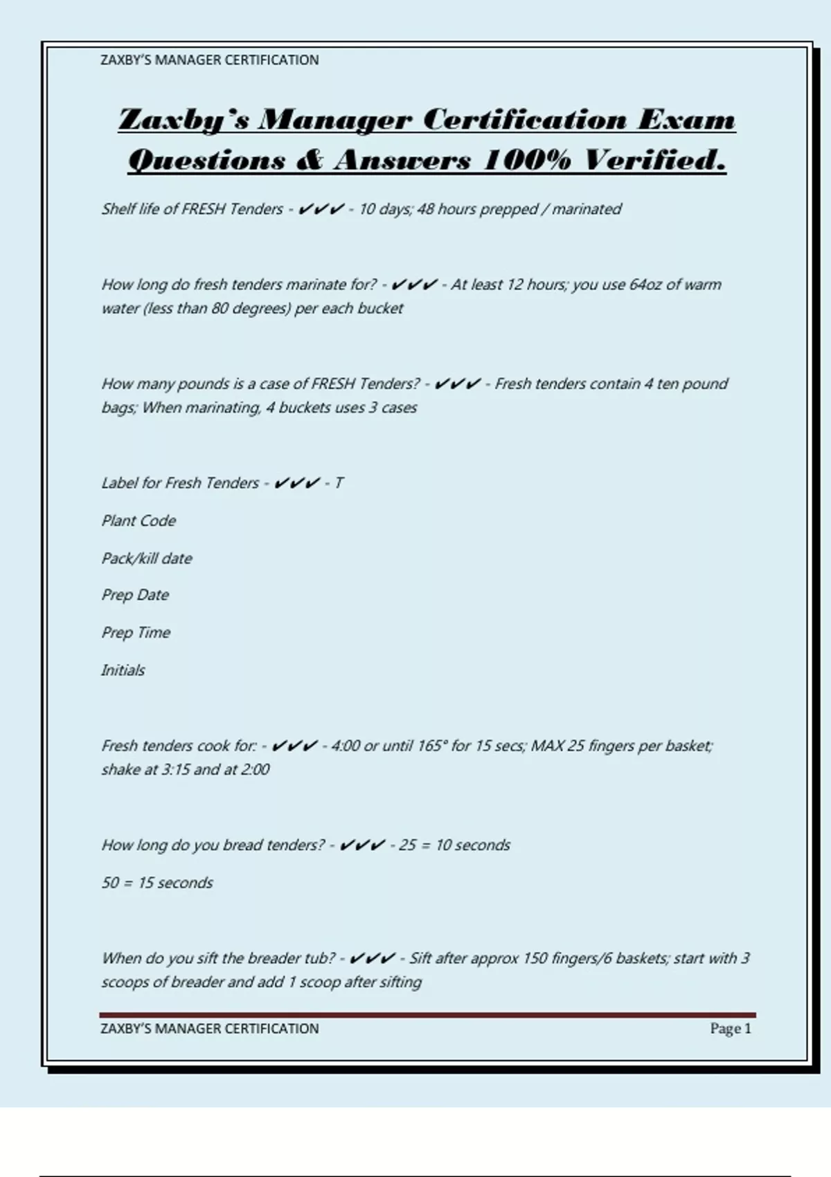 ZAXBY’S MANAGER CERTIFICATION Page 1