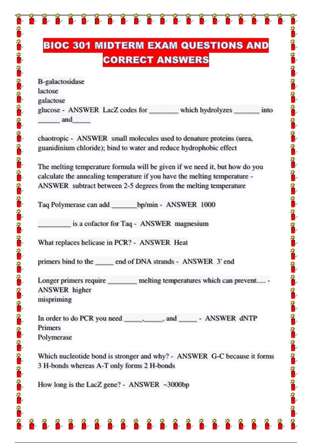 BIOC 301 MIDTERM EXAM QUESTIONS AND CORRECT ANSWERS...