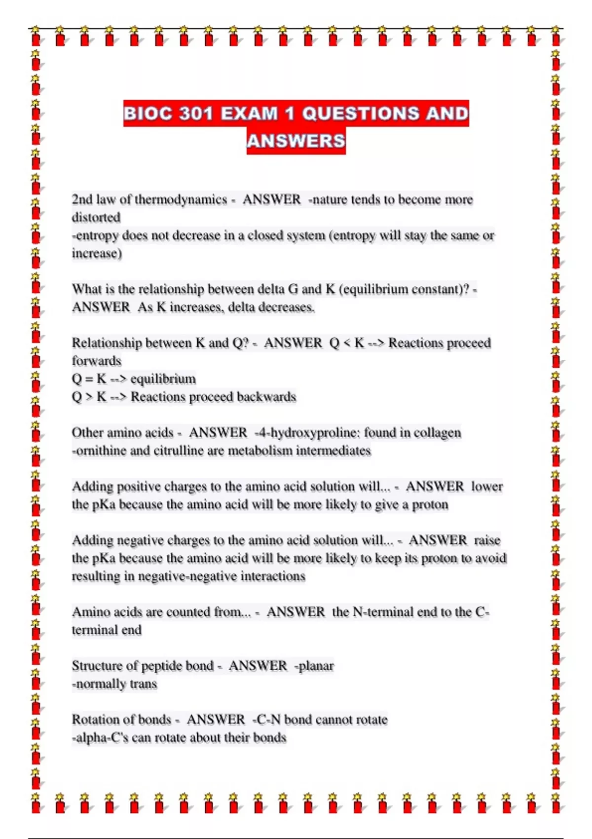 BIOC 301 EXAM 1 QUESTIONS AND ANSWERS