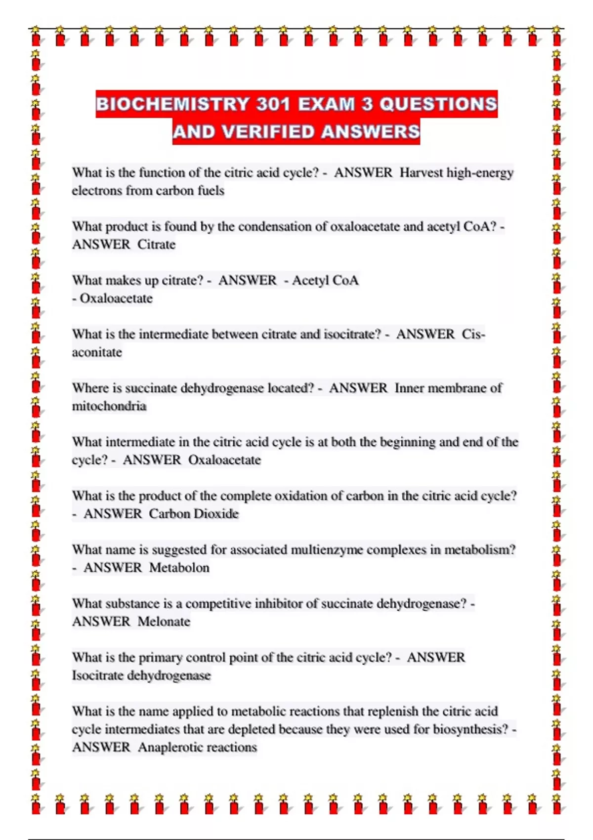 BIOCHEMISTRY 301 EXAM 3 QUESTIONS AND VERIFIED ANSWERS...